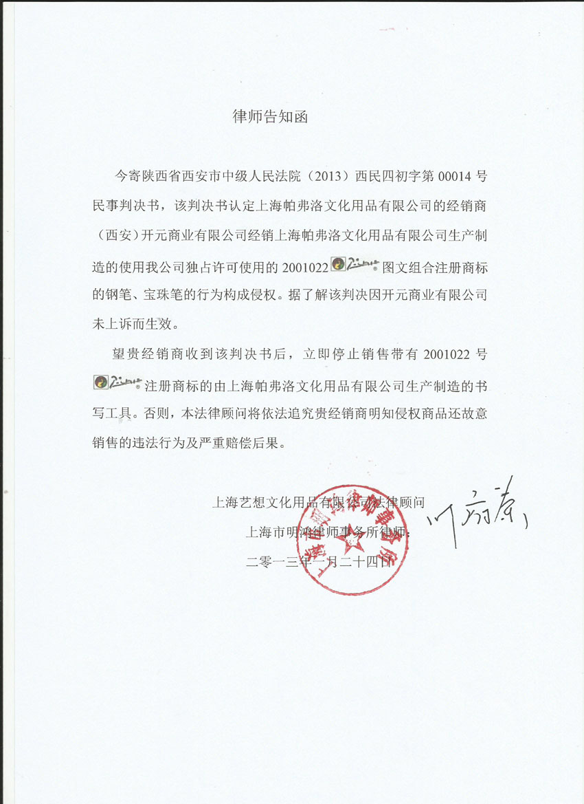律师告知函2013年1月