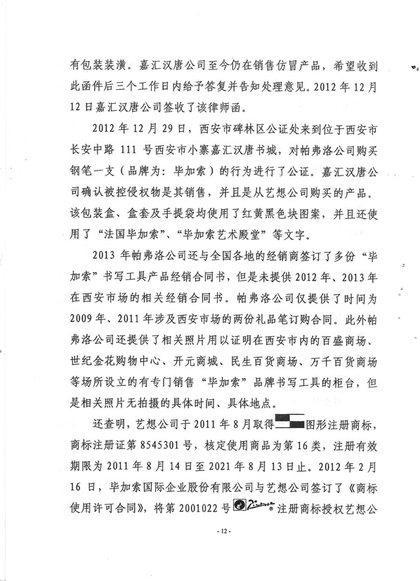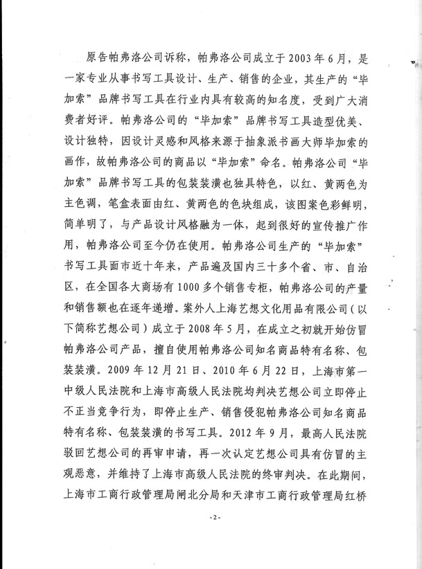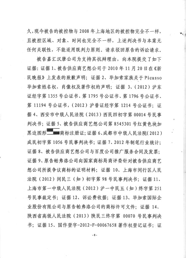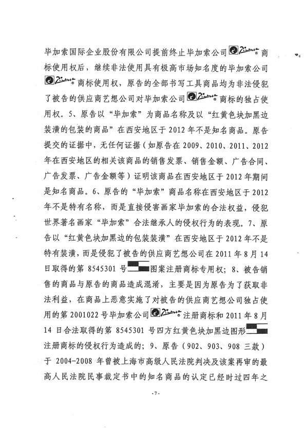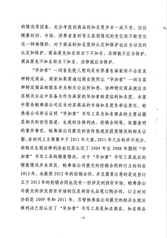 2014年4月9日法院认定法国毕加索艺术殿堂商品不侵权,为合法商品