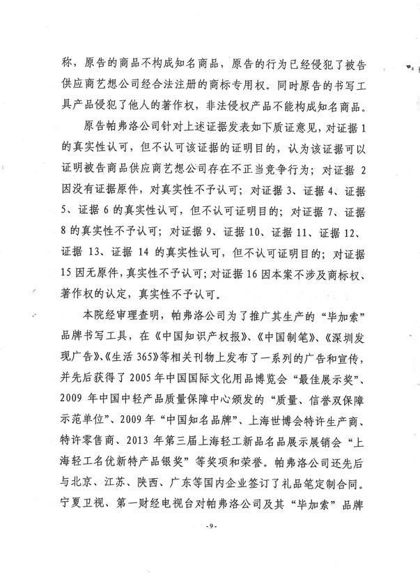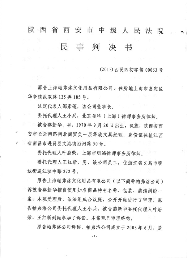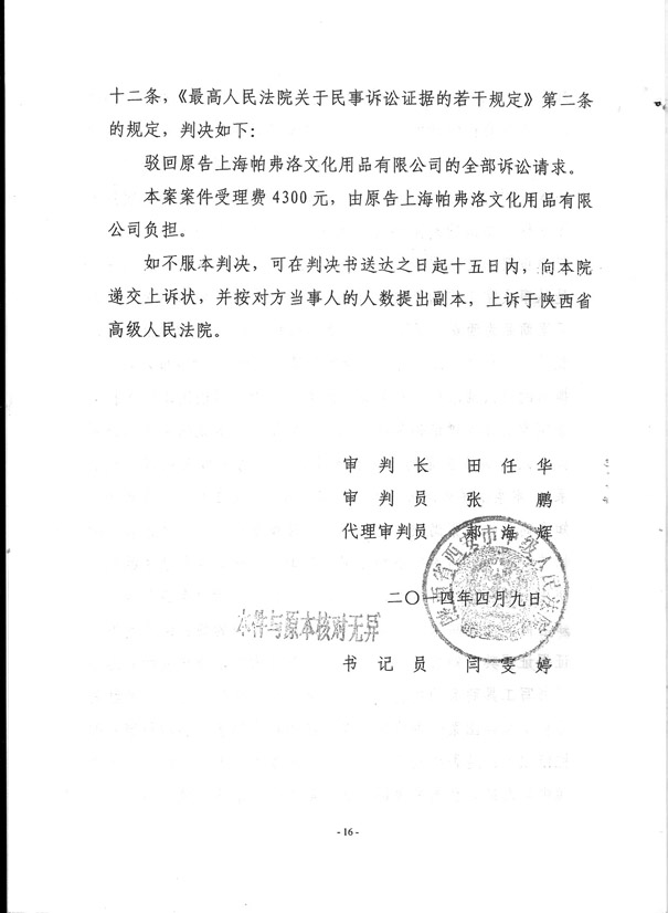 法院驳回上海帕弗洛文化用品有限公司的全部诉讼请求,我方胜诉!