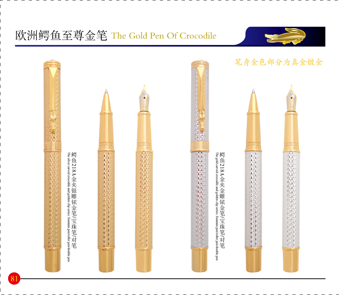 218AGoldClipCarvedGoldFountainPen/RollerPen